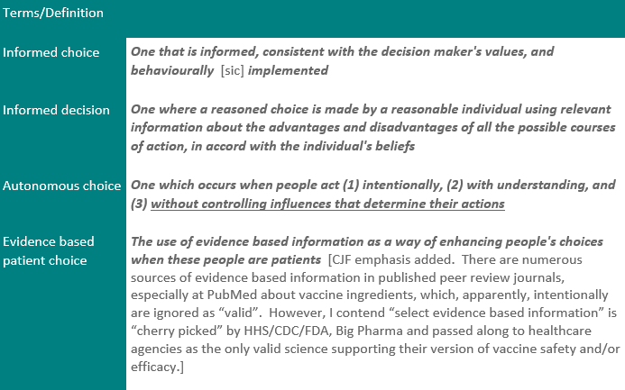 It’s obvious, medical personnel don’t provide “enough information to enable an informed choice” especially about polysorbate 80 in these vaccines: DTaP (Infarix, Tripedia); DtaP-HebB-IPV (Pediarix); DtaP-Hib (TriHIBit); HPV (Gardasil); Influenza (Fluarix); Rotavirus (RotaTeq); Tdap (Adacel, Boostrix).